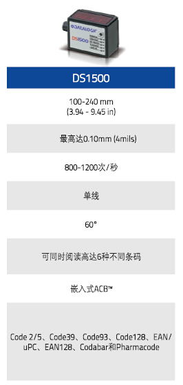 扫描频率:800~1200次/秒,1路输入+2路输出,RS232+RS232或RS485串口,典型阅读距离:50~200mm.