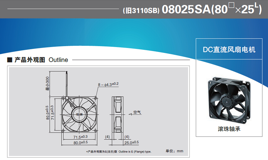 205419/08025SA-12M-AA-00/08025SA系列 滚珠轴承型直流风扇电机