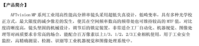 AFT-2514MP百万像素工业镜头
